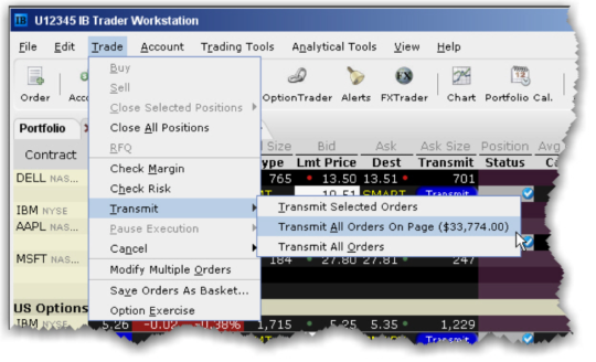 - Transmit All Orders on Page to send all of the orders on the current page. The dollar value in parenthesis reflects the total value of all orders on the page.